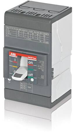 Maksimalafbryder Tmax XT1, 160A med termomagnetisk TMD relæ. Indstilling I1=112...160A, I3=1600A, 3-polet, 50kA ved 400V IEC.