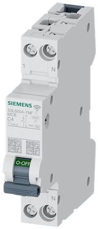 Siemens miniatureafbryder 5SL6 COM med målefunktion og kommunikation. 230 V, 6 kA, 1+N, C, 4 A.
