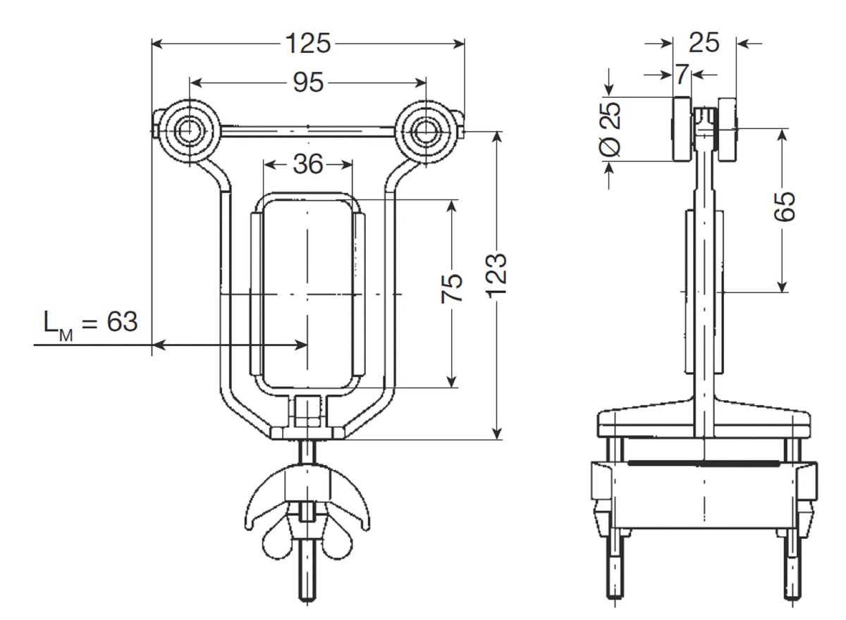 Medbringervogn i plastik designet til effektivt at føre fladkabel frem, udstyret med patentmøtrikker for sikker montering. Model MS 1 F/125-50 K-PM.