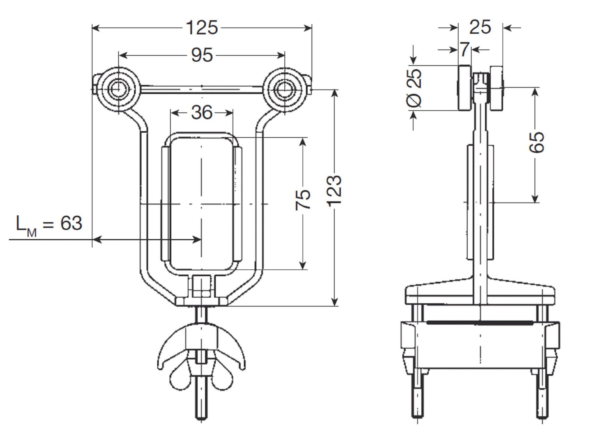 Plastik medbringervogn med stålhjul til sikker kabelføring. Passer til patentmøtrikker, MS 1 f/125-80-PM, alle typer.