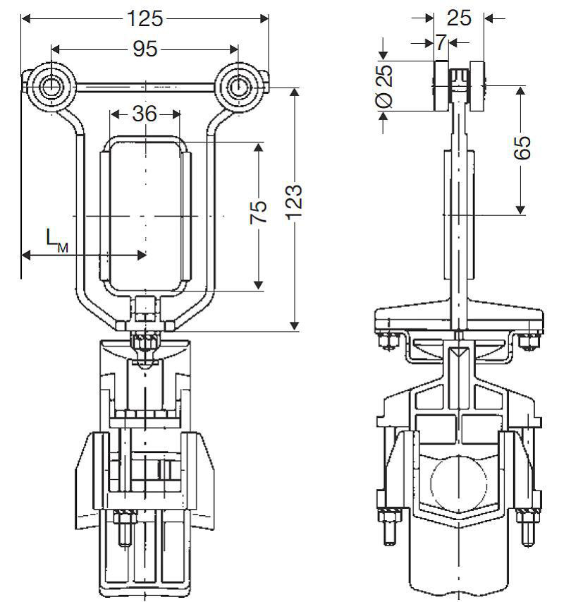 Medbringervogn til rundkabel i plastik med stålhjul og patentmøtrikker, MS 1 R/125.