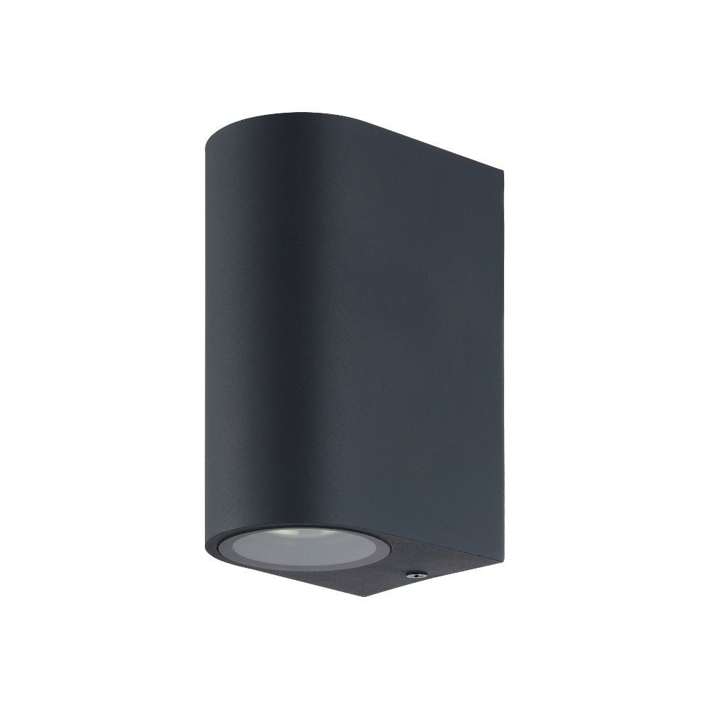 Elegant EGLO Medellin udendørs væglampe i antracitfarvet aluminium. Designet til 2x5W LED GU10 pærer (medfølger ikke). IP44 godkendt til udendørs brug.