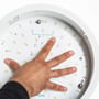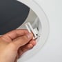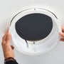 - Design: Moderne og minimalistisk design med en hvid ramme, der passer ind i de fleste indretninger.