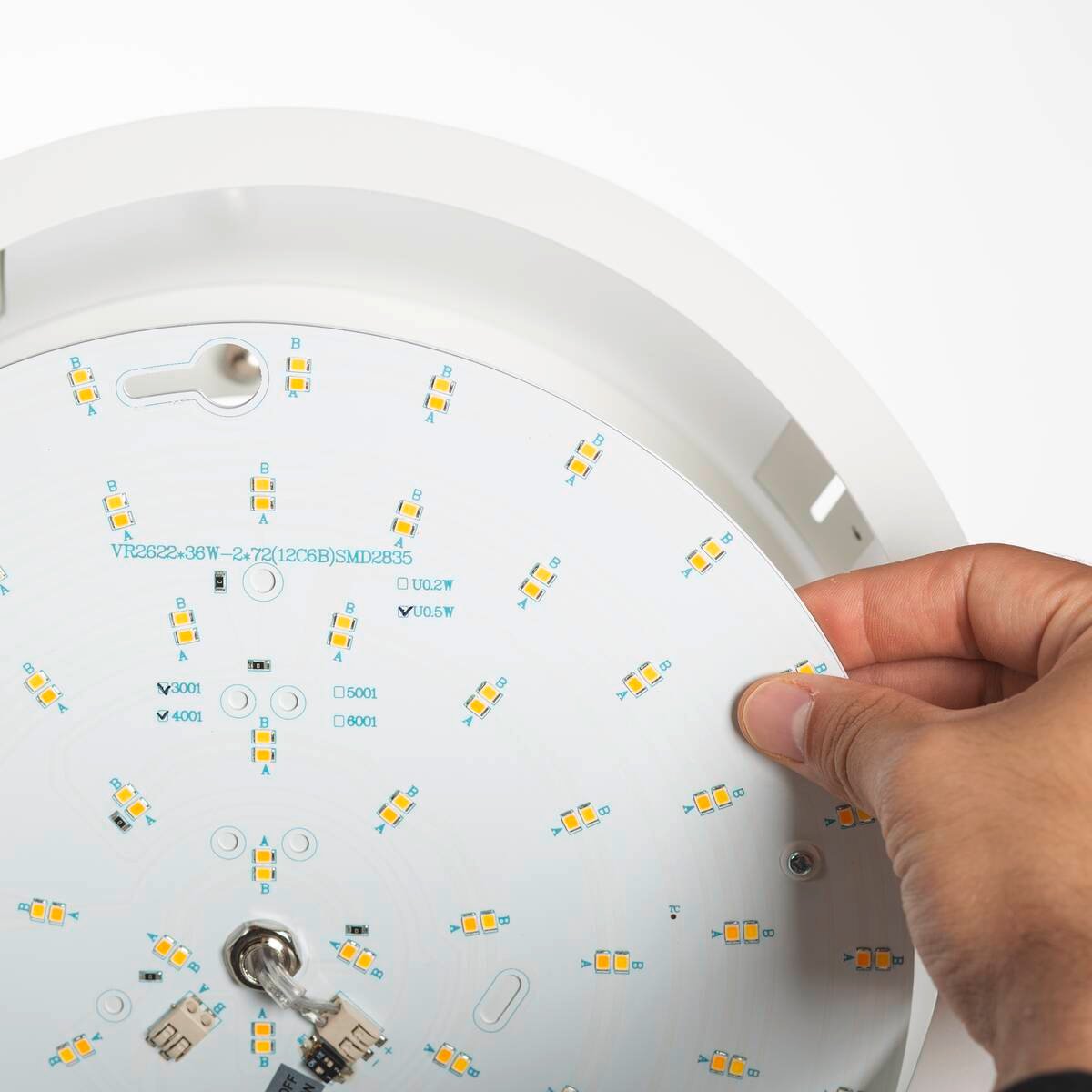 Elegant og alsidig LED loftlampe til indendørs brug med justerbar farvetemperatur.