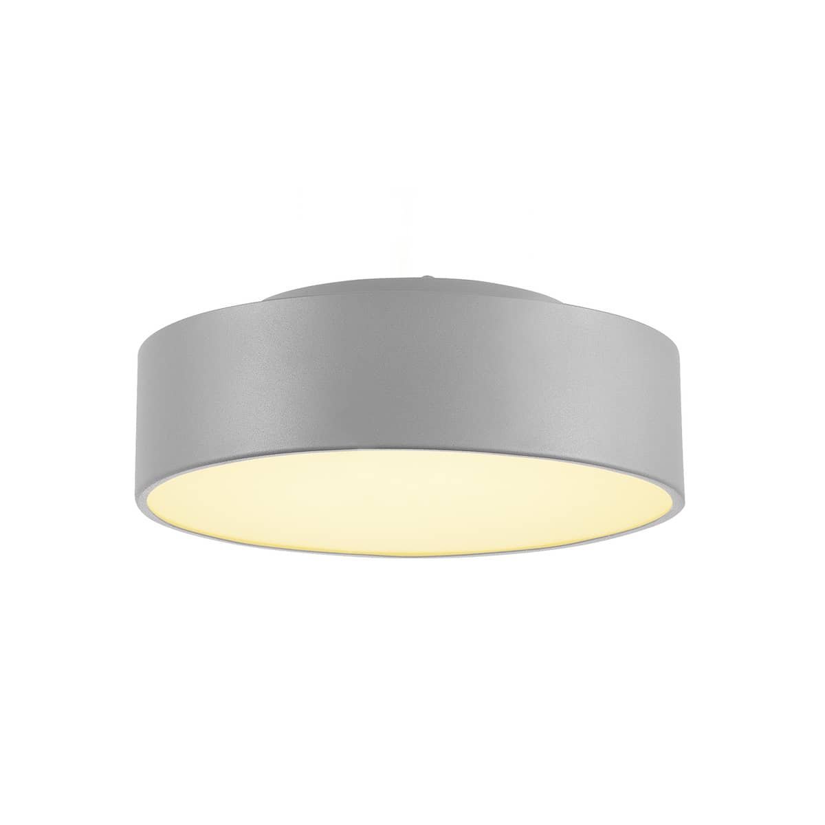 MEDO 30 loftlampe i sølvgrå. Rund, Ø 28 cm, 12W LED, 3000K. Kan ombygges til pendel.