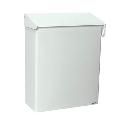 MEFA Bosca 28 postkasse i hvid, uden lås. Kompakt design med målene 340 x 257 x 108 mm, ideel til montering ved hoveddøren.