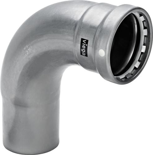 Megapress S XL bøjning 90° med SC-Contur til stålrør iht. DIN 10220/10255. Ulegeret stål med zink-nikkelbelægning og indstiksende prestilslutning.
