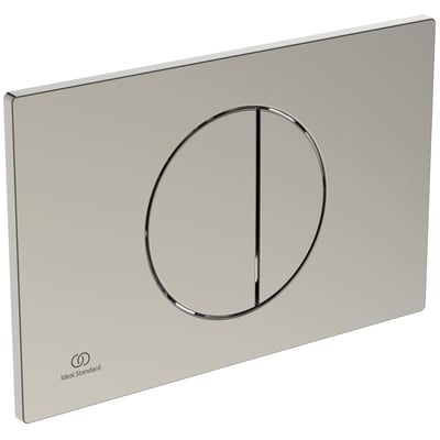 Stilfuld og funktionel Ideal Standard OLEAS mekanisk kontrolplade i sølv. Designet til nem kontrol over toiletskylning med mekanisk betjening og et slankt design.
