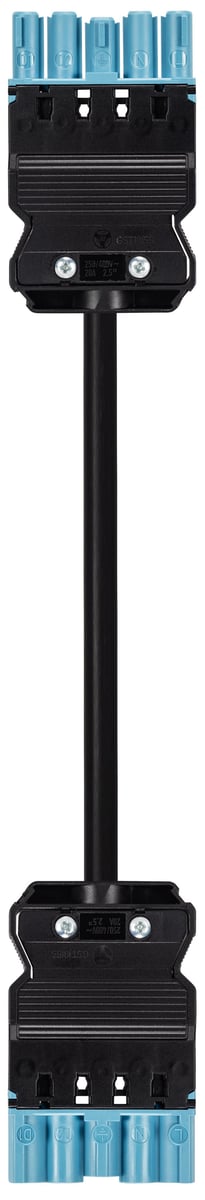 5-polet GST18i5 mellemkabel fra Wieland med han/hun-stik, PVC-isolering, 1,5mm² ledere, blå farve og 1 meters længde.