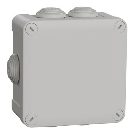 Grå membrandåse fra Schneider Electric, 100x100x50 mm. Ideel til montering, kabelføring og styring af strøm og IT-enheder.