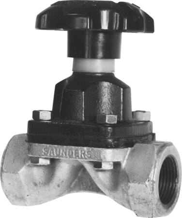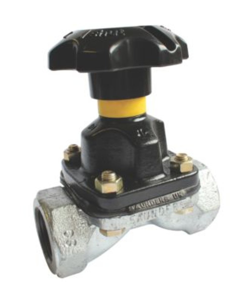 Galvaniseret Saunders membranventil med 1/2" tilslutning og muffe-muffe design. Produceret iht. ISO 9001 standard.