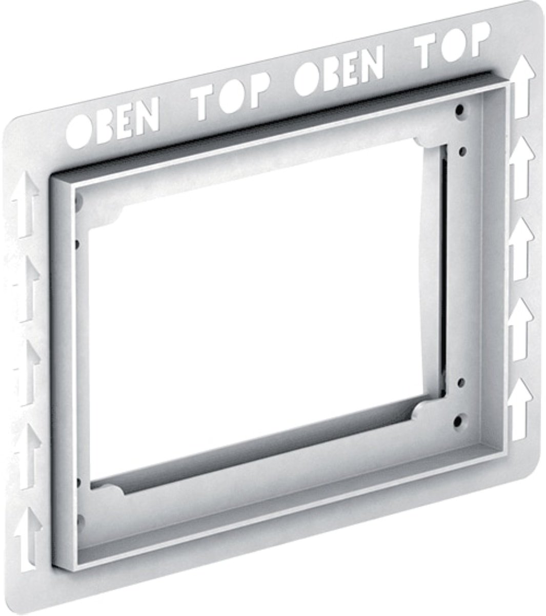 Denne indbygningsramme fra MEPA er udført i krom (Type 2) og er designet til planmontering af betjeningsplader.