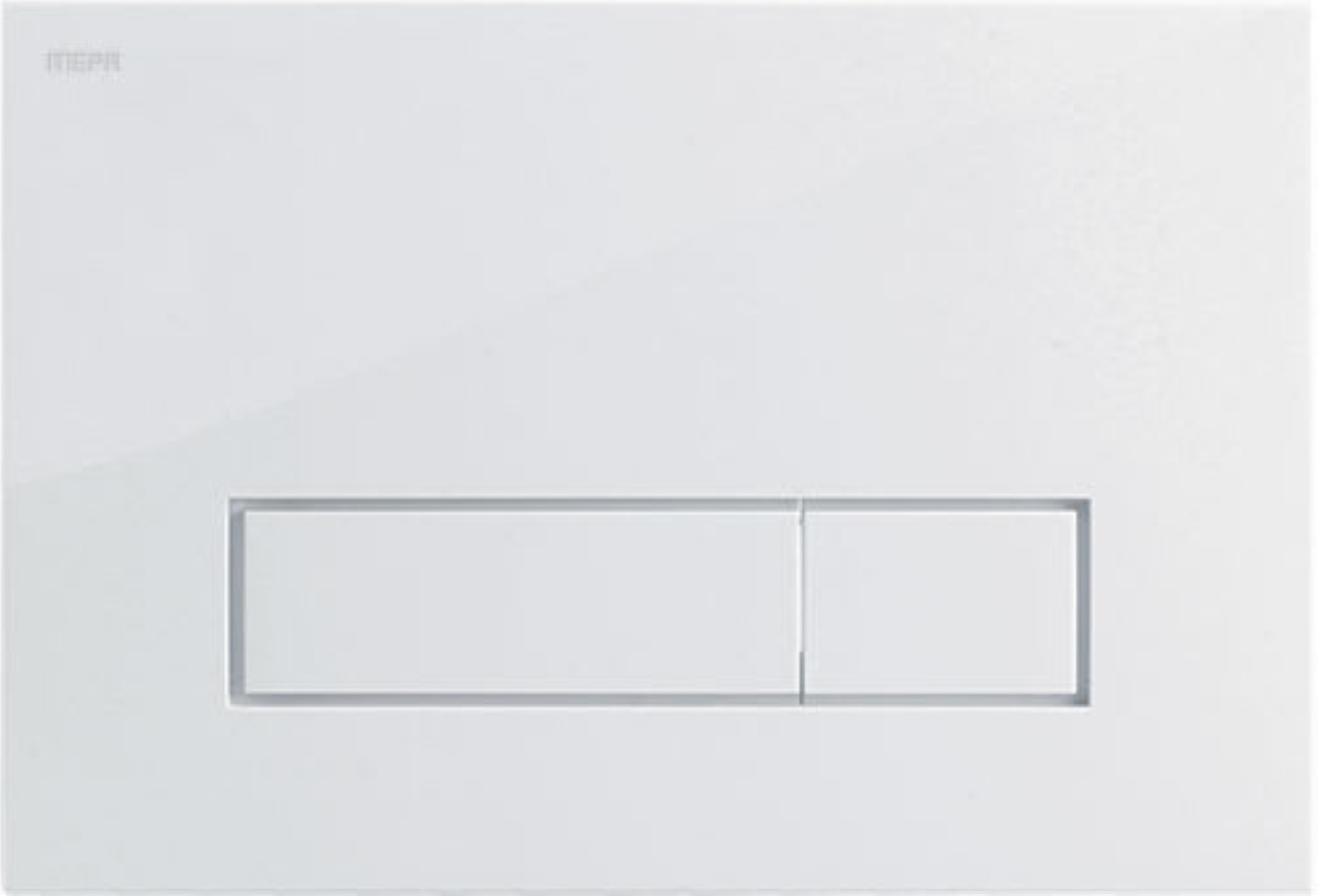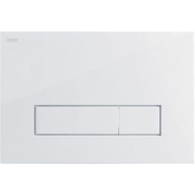 MEPAorbit betjeningsplade til 2-mængde skyl, udført i hvid plast. Til udenpåliggende eller planmontering. Kræver separat indbygningsramme.