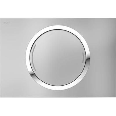Mat krom MEPAzero betjeningsplade til 2-mængde skyl. Til udenpåliggende/planum installation. Anbefalet tilbehør: Indbygningsramme type 1 (hvid eller blank krom).