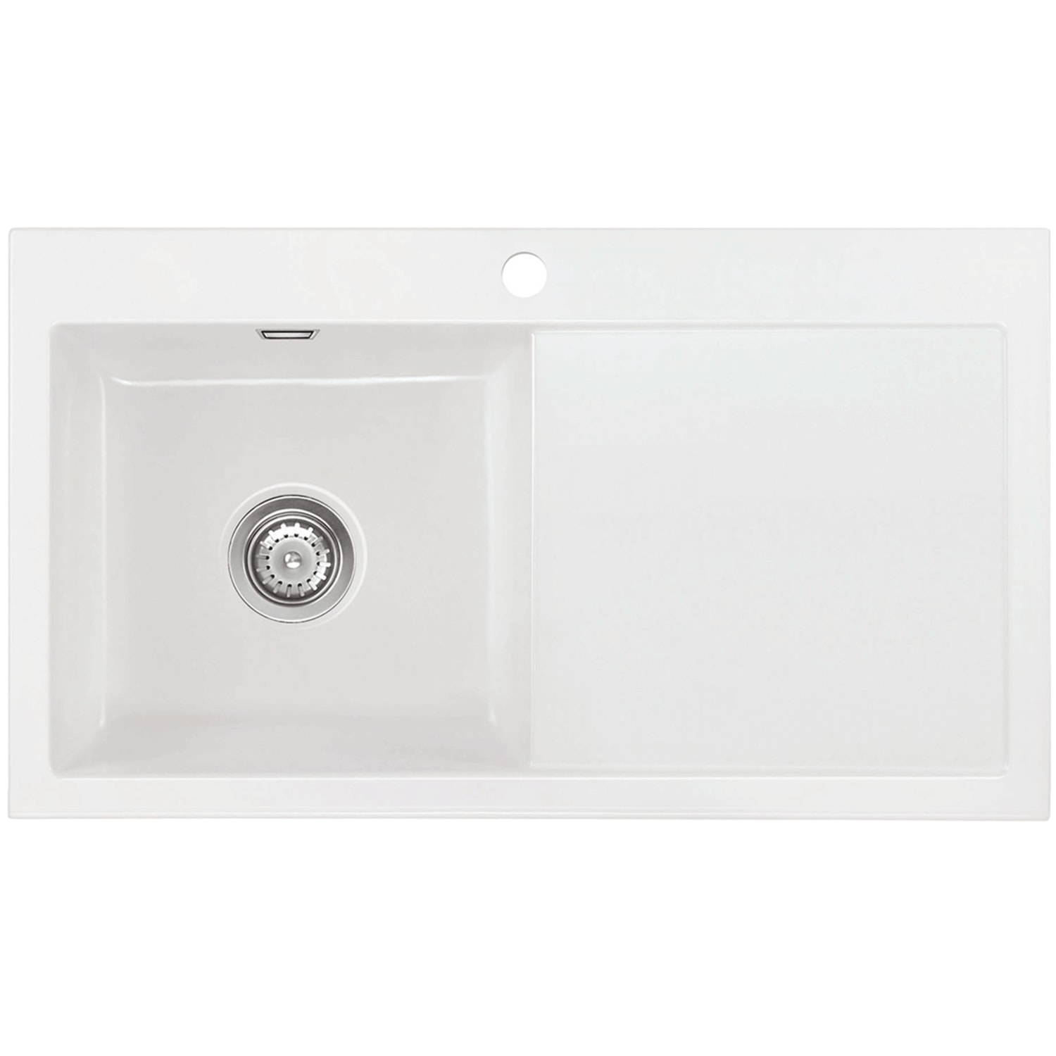 Mera 90 køkkenvask, hvid keramik, krom afløb - Lavabo
