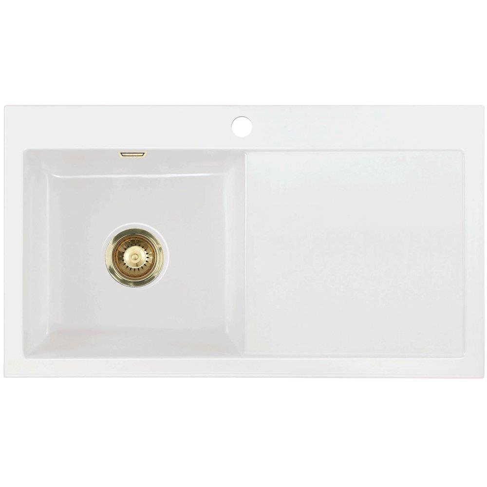 Mera 90 køkkenvask, hvid keramik, messing afløb - Lavabo