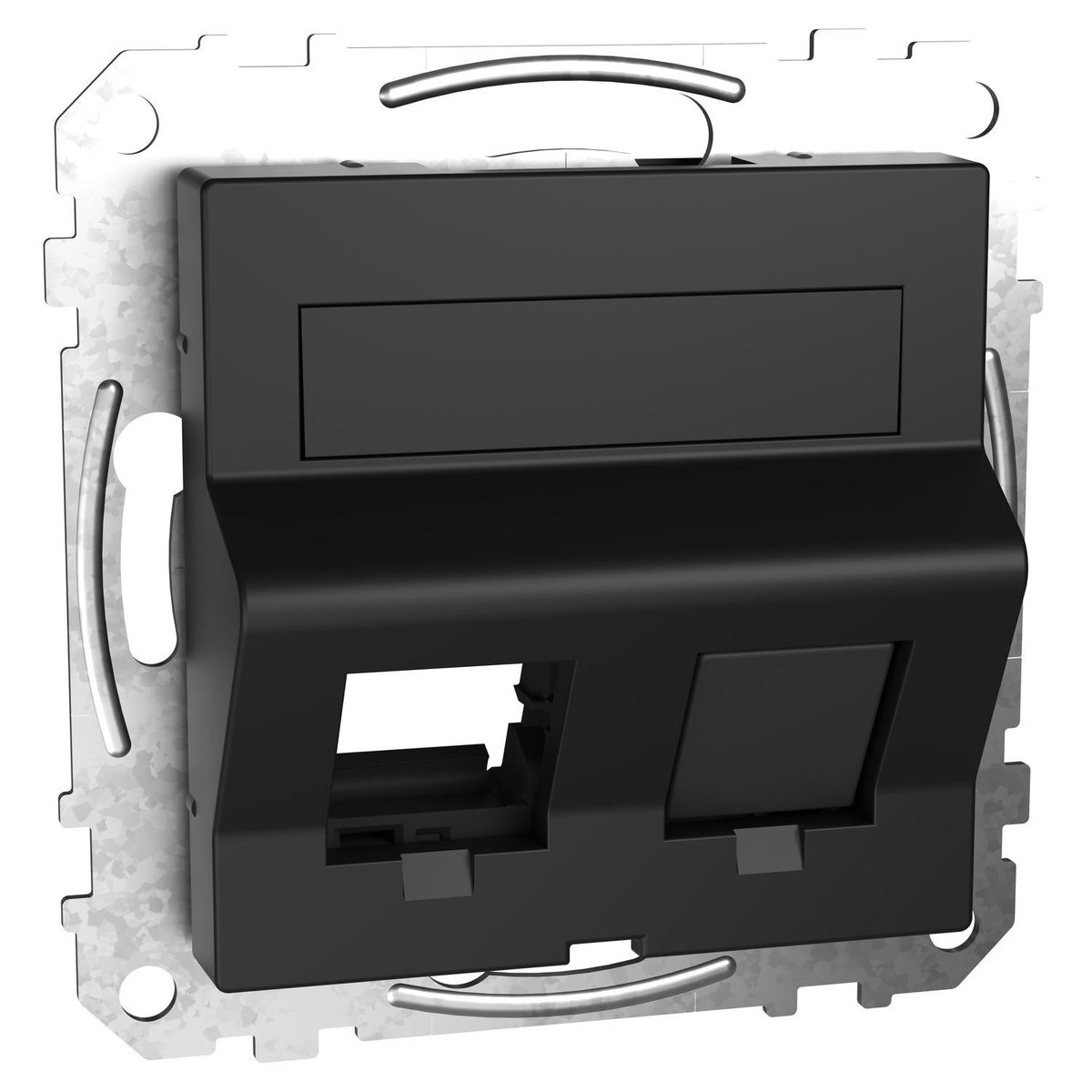 Schneider Electric Merten System M MEG-4568-0403 i mat sort. Vinklet dataudtag for Actassi og Keystone. Passer til Merten M-Arc, M-Elegance, M-Plan...
