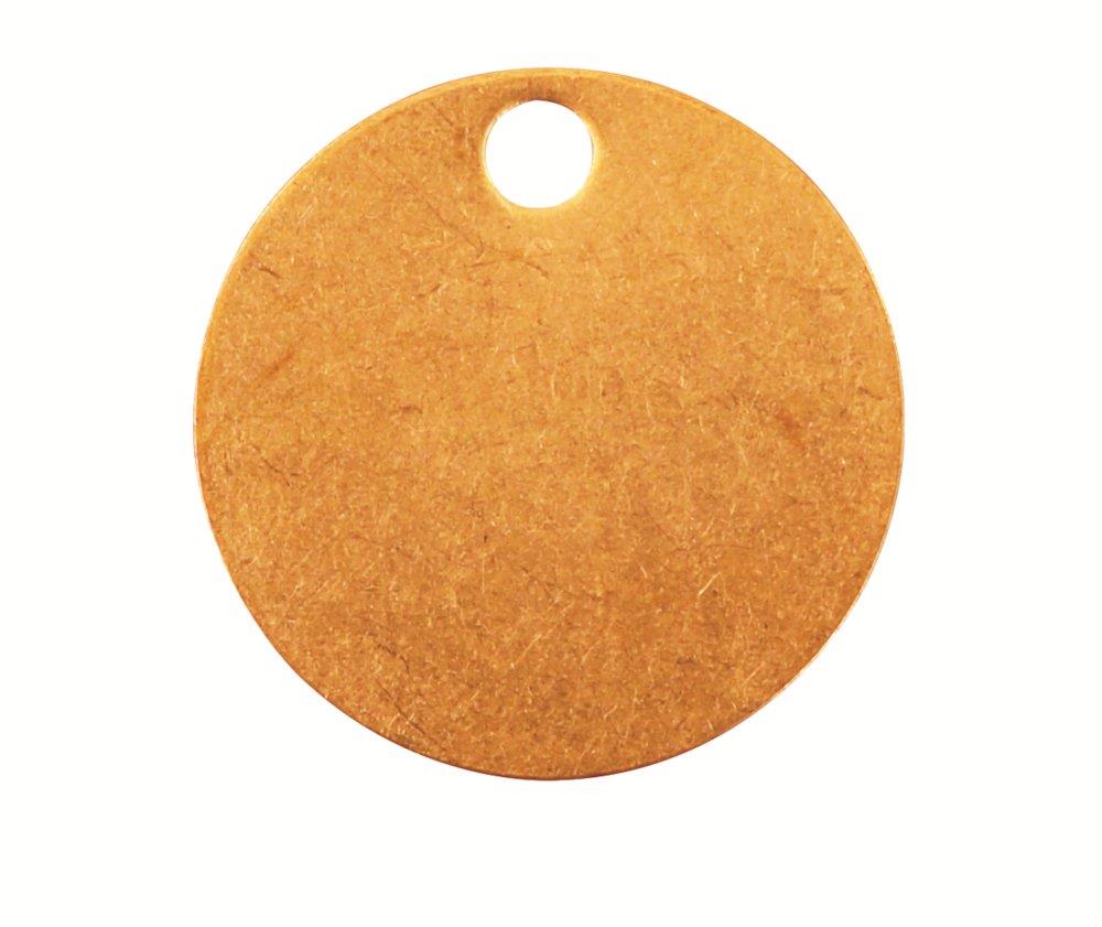 Messingskilte fra Diesella. Ideelle til mærkning og identifikation. Diameter: 27 mm. Hul diameter: 4 mm. Leveres i pakke med 100 stk.