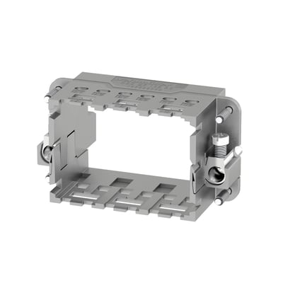 ModuPlug® metal ramme HDC MF 10B AC, størrelse 4, til 3 slots. Skrueterminal på begge sider for jordtilslutning (0.5-10mm²).