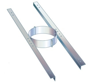Metalbestos Wood etagebæring sikrer skorstenens stabilitet og bæring, hvor den passerer etager. Udvendig diameter: 230 mm.