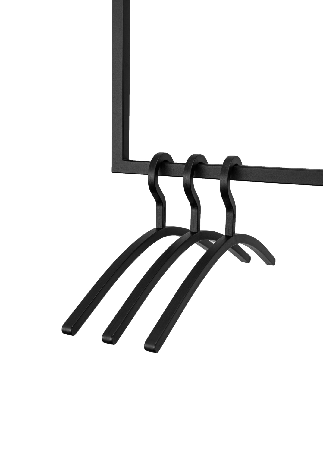 Praktiske sorte bøjler i plastik. Pakken indeholder 3 stk. med en bredde på 46 cm.