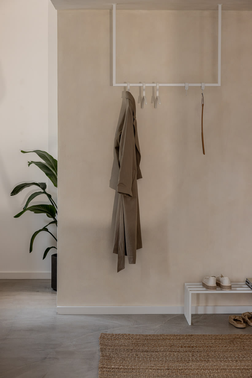 Metallbude Rubi er et stilfuldt og funktionelt tøjstativ designet til at blive hængt fra loftet. Dette stativ kombinerer et minimalistisk udtryk med robusthed, hvilket gør det til en ideel løsning til opbevaring af tøj i moderne hjem.