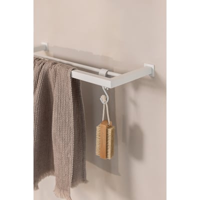 Stenni håndklædeholder i hvid, firkantet design. Måler 500 mm i bredden og 170 mm i dybden. Fremstillet i metal.
