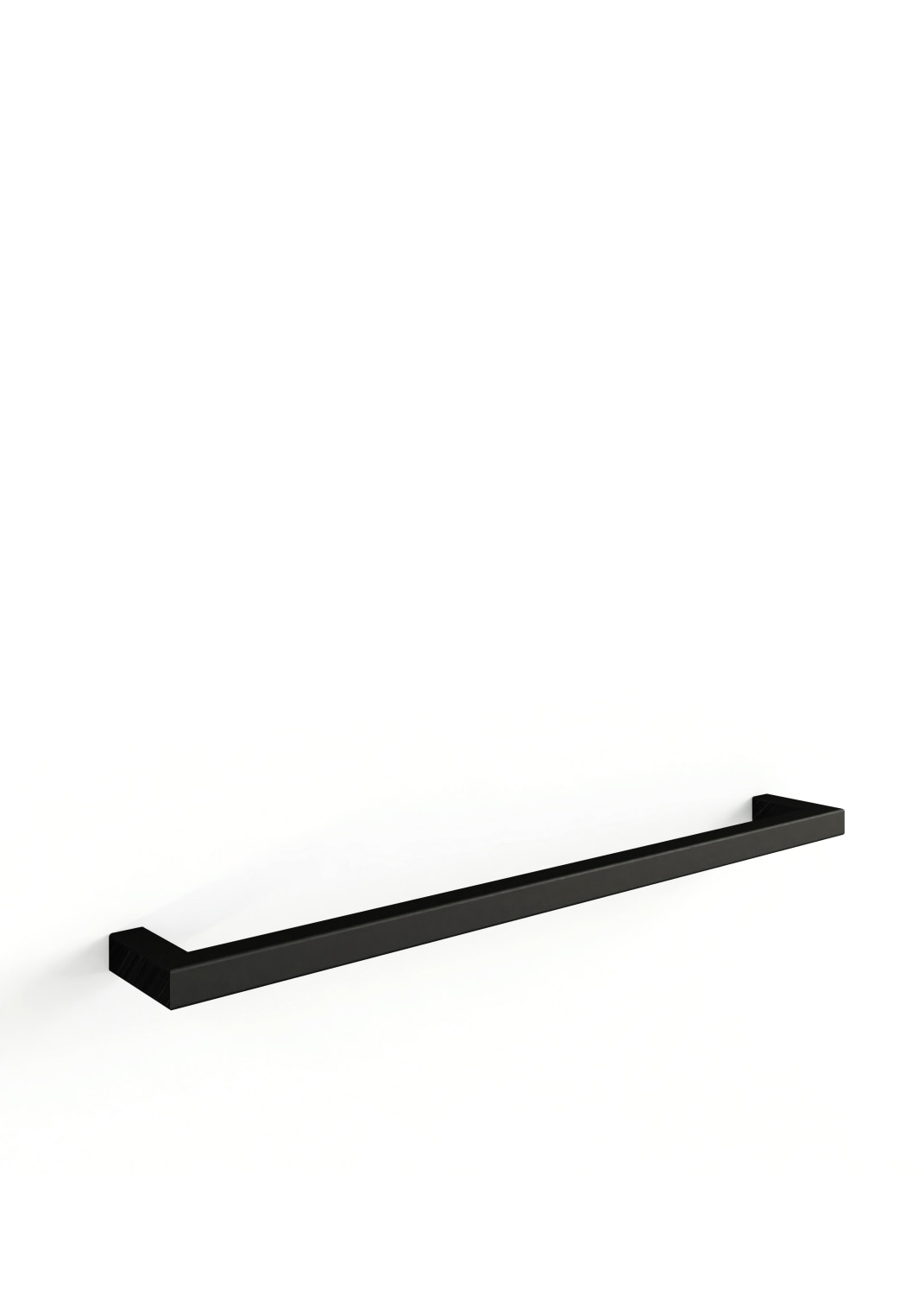 Stilfuld og firkantet håndklædestang i sort metal. Mål: 550 mm bredde, 70 mm dybde.