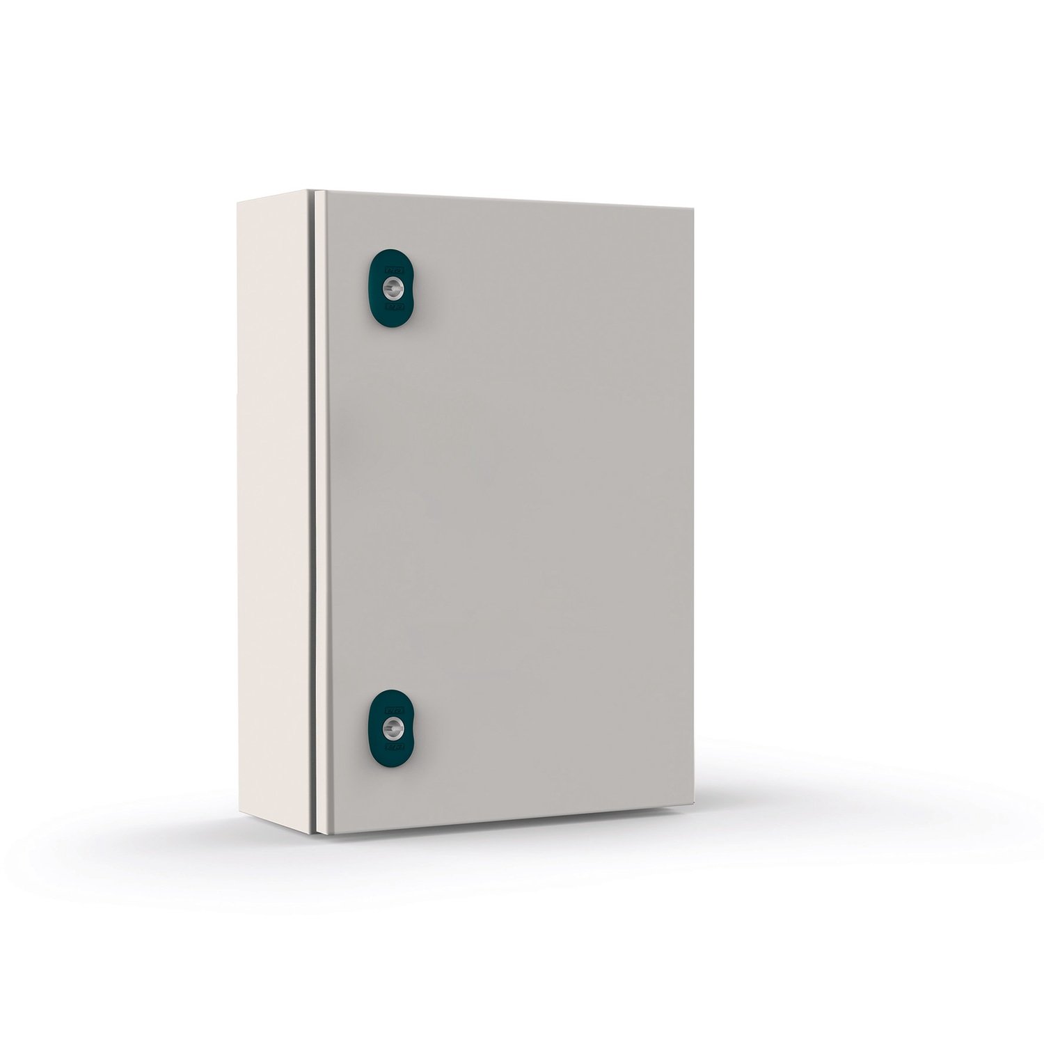 ECOR metal vægskab fra MTO Electric udført i 1,5mm stålplade med 2mm monteringsplade. Vendbar dør og kabelindgangsflange i bunden. Lakeret med epoxy-polyester strukturlak i RAL7035.