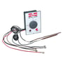 Grå plastboks (nyt design) med termostat 65°C, 2-polet overkogsikring 110°C, glimlampe og kabelføring.
