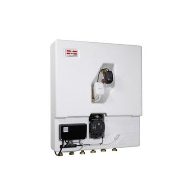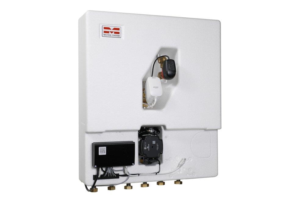 METRO System 4 Slimline S er en ultrakompakt, væghængt fjernvarmeunit, der er designet til moderne boligbehov. Enheden kombinerer direkte fjernvarme med en blandesløjfe til rumvarme og en effektiv varmeveksler til brugsvand, hvilket sikrer en stabil og effektiv varmefordeling i hele boligen.