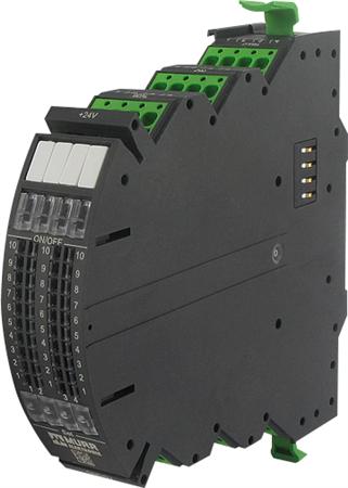 Elektronisk touchbeskyttelseskredsløb med 4 kanaler. IN: 24 V DC OUT: 24 V DC / 1-2-3-4-5-6-7-8-9-10A.