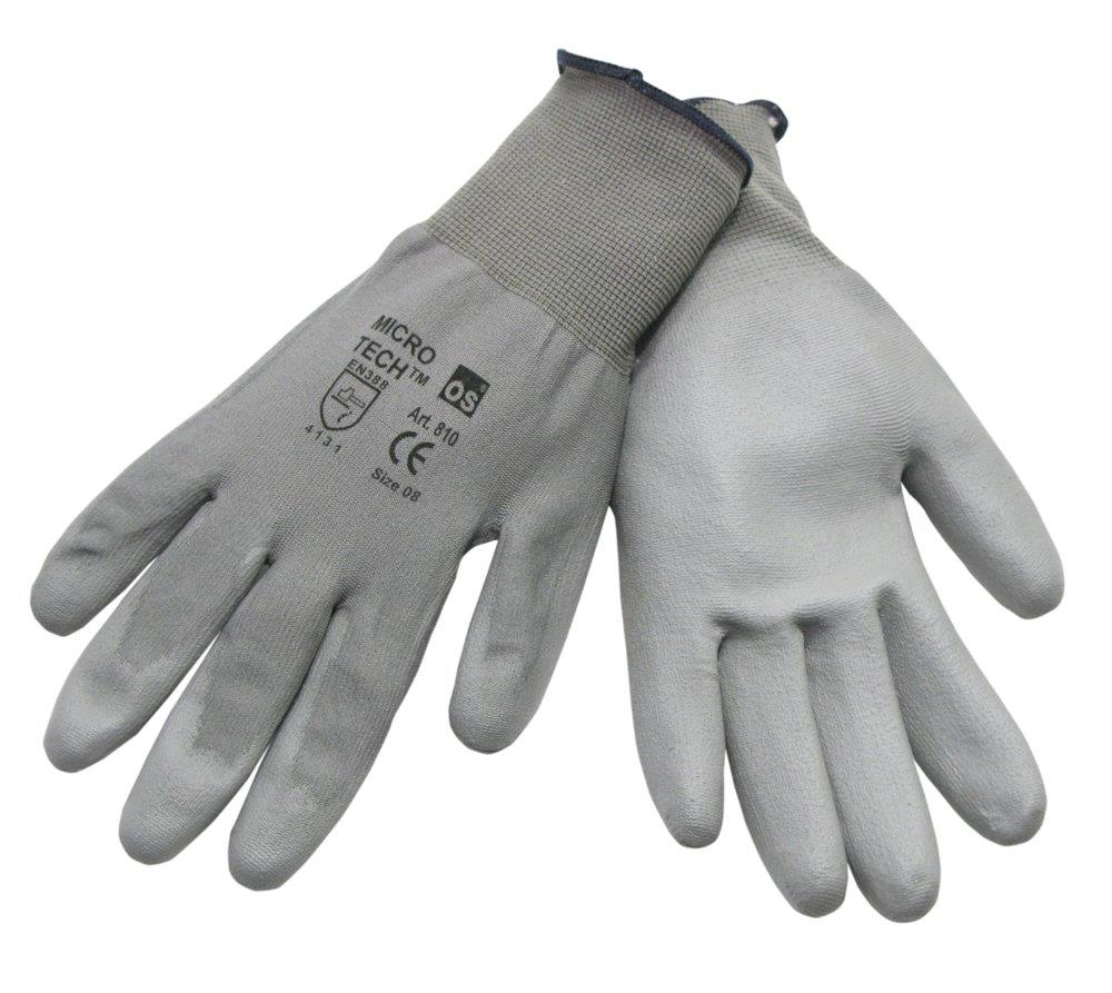 Tynd nylonstrik handske med ribkrave og ru polyurethan belægning i håndflade og på fingerspidser. Kategori II, testet iht. EN 420, EN 388.