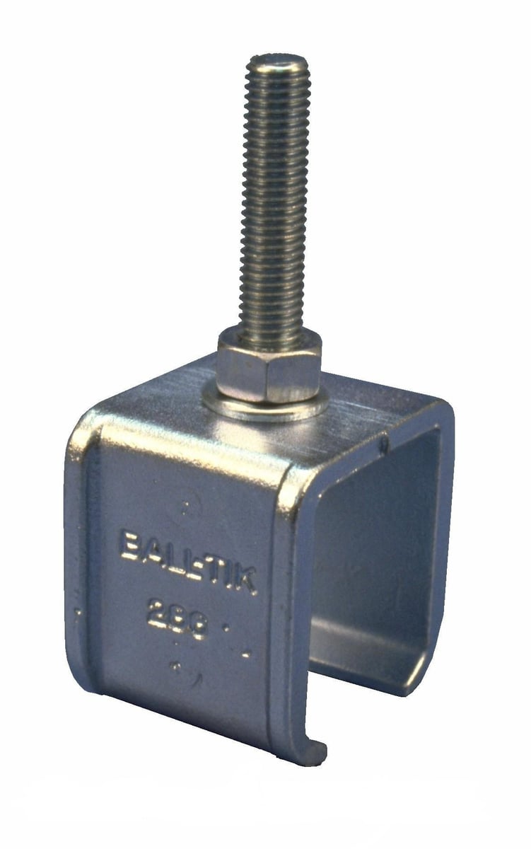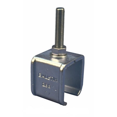 Midterbæreknægt til loft, enkelt med 16 mm bolt. Støbegods, elforzinket. Anbefalet bæreknægt afstand: 700 mm.