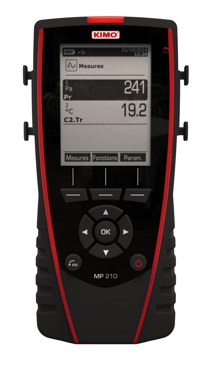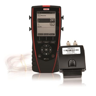 MP210 er en differenstrykmanometer-serie fra Kimo. Instrumentet er designet til at bestemme lufthastighed/flow via differenstrykmåling, målt med pitotrør eller debimoblade. MP210 kan også måle lufthastighed/flow med vingehjul (Ø14/70/100mm) eller varmetråd.