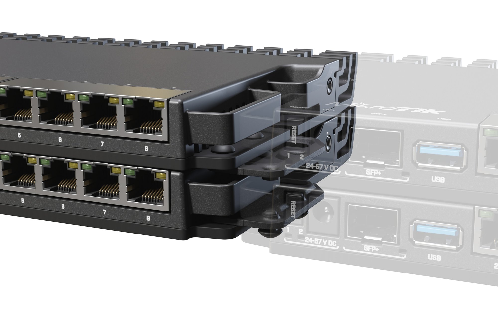 Rackmount kit specielt designet til RB5009 routeren. Giver mulighed for nem installation i et standard 19-tommer rack.