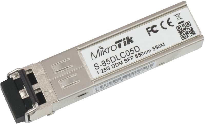 SFP dual fiber modul med 1.25G hastighed, multimode, 550 meters rækkevidde og 850nm bølgelængde.