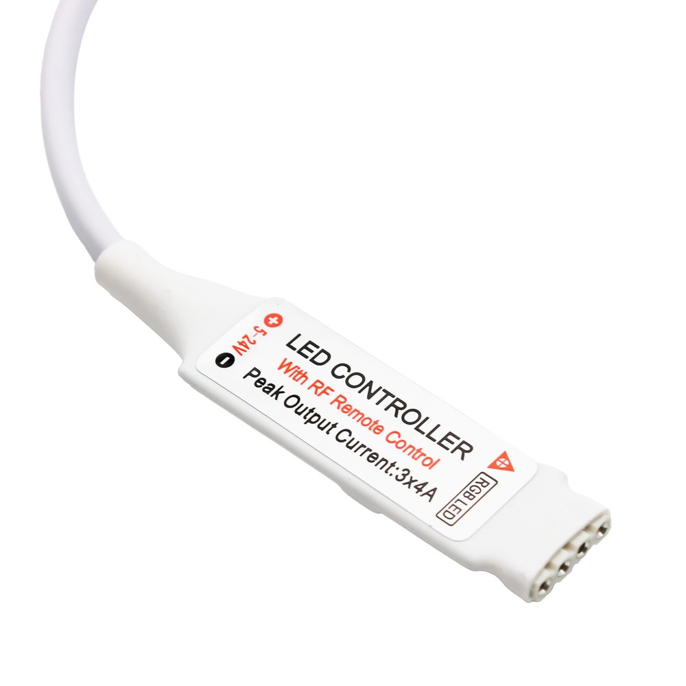 Denne mini RGB controller er den ideelle løsning til at styre dine RGB LED lys. Med den medfølgende fjernbetjening kan du nemt skifte farver, justere lysstyrken og vælge forskellige lyseffekter.