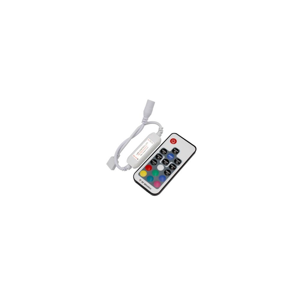 Denne mini RGB controller leveres inklusive fjernbetjening og er velegnet til både 12V (72W) og 24V (144W) systemer. Den kompakte størrelse gør den nem at installere og betjene.
