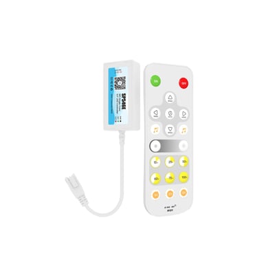 Kompakt Mini SPI løbelys controller med 2,4 GHz fjernbetjening. Understøtter 12-24V og giver dynamiske lyseffekter til dine LED-installationer.