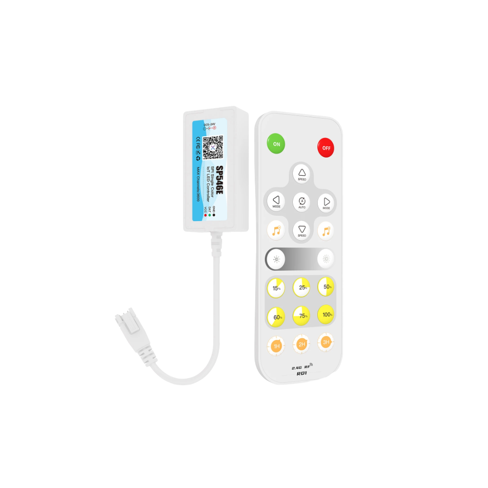 Denne Mini SPI løbelys controller giver dig fuld kontrol over dine SPI LED-strips og -moduler. Med den medfølgende 2,4 GHz fjernbetjening kan du nemt skifte mellem forskellige dynamiske lyseffekter og justere indstillingerne. Controlleren er designet til at være kompakt og diskret, hvilket gør den ideel til installationer, hvor pladsen er begrænset.