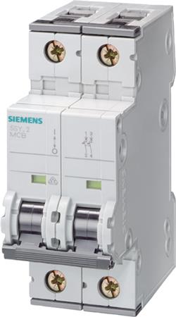 2-polet automatsikring fra Siemens, der sikrer pålidelig kortslutnings- og overbelastningsbeskyttelse i bolig- og erhvervsbygninger. 6A, B-karakteristik og 15kA brudstyrke.