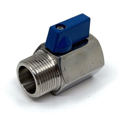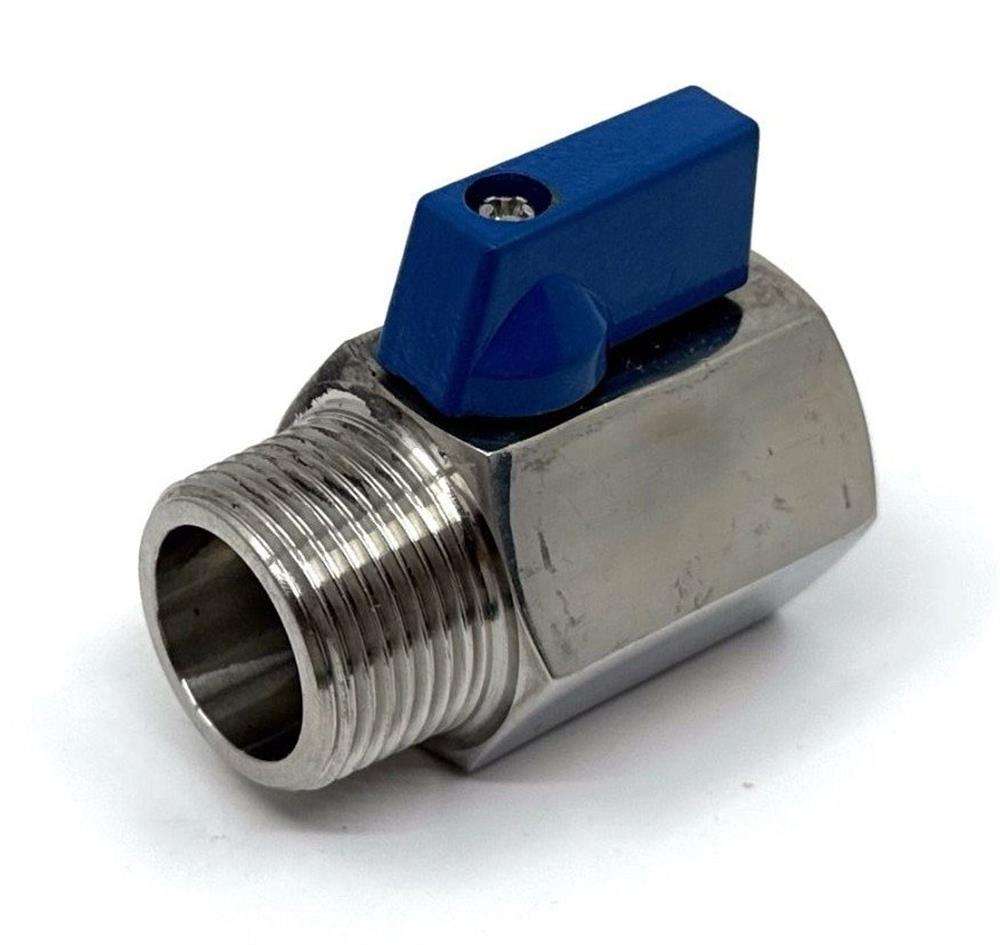 Minikuglehane som afspærringsventil i sanitære installationer. Fremstillet i syrefast/rustfri stål for optimal holdbarhed.