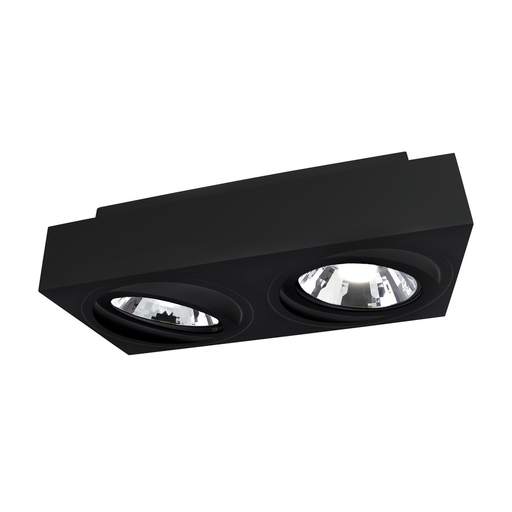 Elegant sort dobbelt påbygningsspot fra Mirora med justerbar funktion. Ideel til 2x GU10 pærer og måler 29,3 x 14,5 cm.