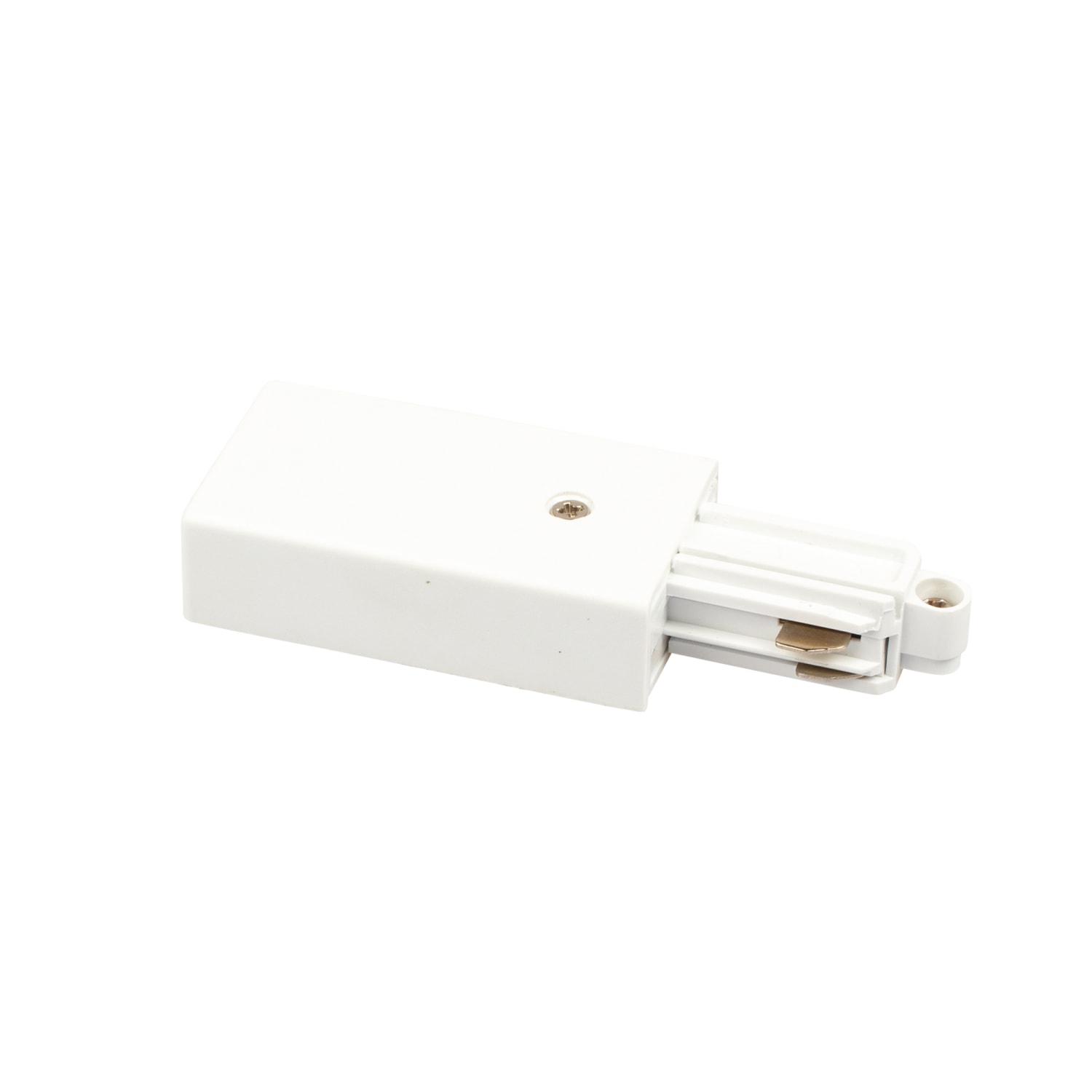 Mita 1F tilslutning til skinnesystem. Stilrent design i hvid plast. Dimensioner: 35 mm bred og 18 mm høj. Tilslutningen er 1-faset og højreorienteret.