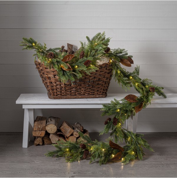 Skab julestemning med denne grønne granguirlande fra Star Trading. 280 cm lang, med timer.