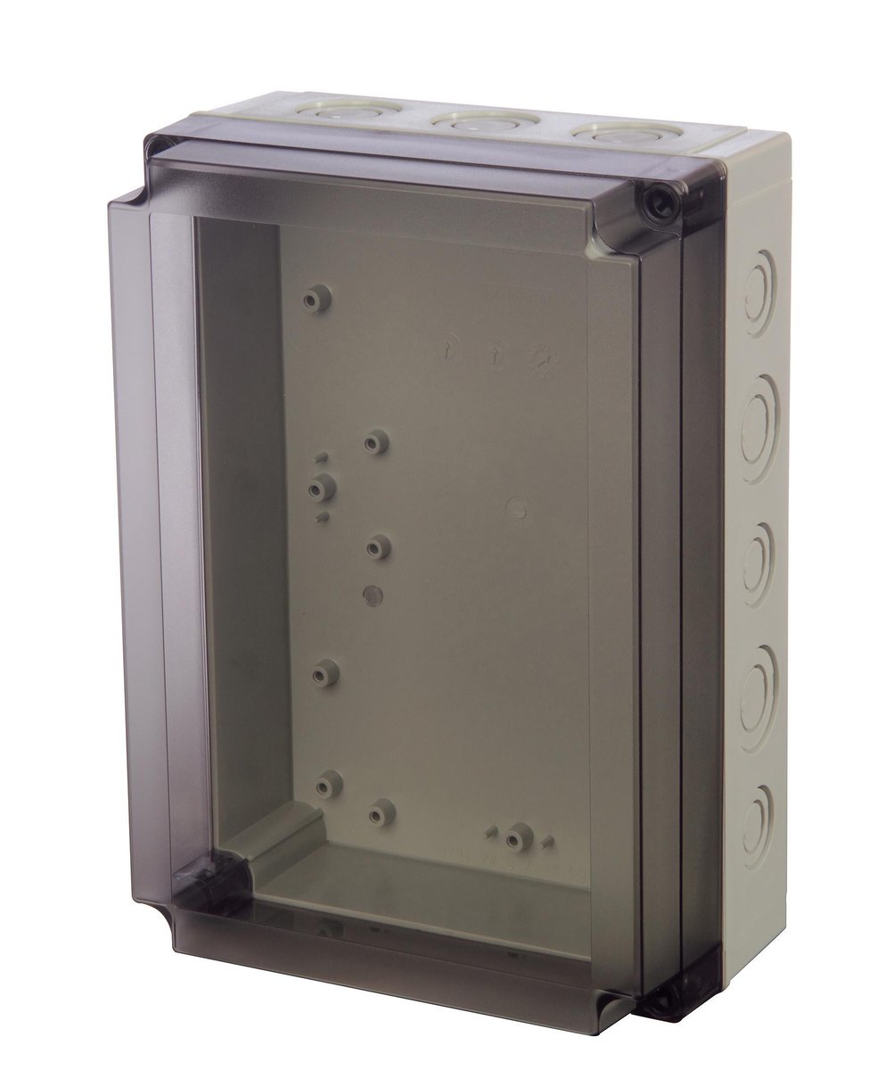 MNX kasser i polycarbonat og ABS til indkapsling og beskyttelse af elektriske og elektroniske komponenter. Størrelse: 255 x 180 x 150 mm.