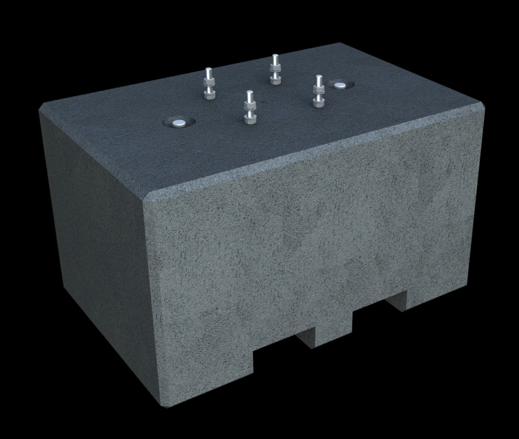 Præfabrikeret mobil-fundament type 6, designet til lysmaster op til 6 meter. Med udsparinger til gafler og løftepunkter for nem transport.
