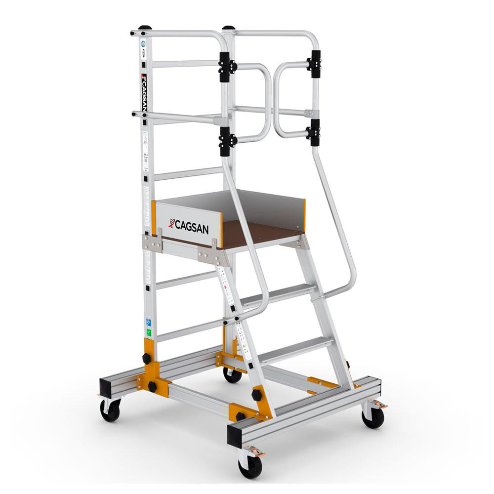 Den store, robuste platform giver en skridsikker flade at arbejde på. Platformen betrædes igennem de selvlukkende rækværk.