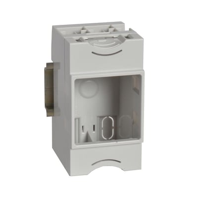 Modular DX3 Mosaic support til DIN-skinne, designet til montering af Arteor, Mosaic program 2-modul eller Osmoz kontrol- og signalenheder. Måler 45 x 83 x 44 mm.